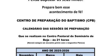 O Centro Pastoral do Matrimónio realizará os Encontros em ordem à preparaçáo para a Recepção do Sacramento do Matrimónio nos meses de Março e Maio de 2026.
