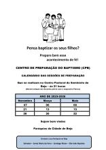 Neste Ano Pastoral o Centro Pastoral para o Baptismo, em Beja, promove ações de preparação para a celebração deste Sacramento nos meses de Novembro, Março e Maio, dirigidas aos Pais e Padrinhos.